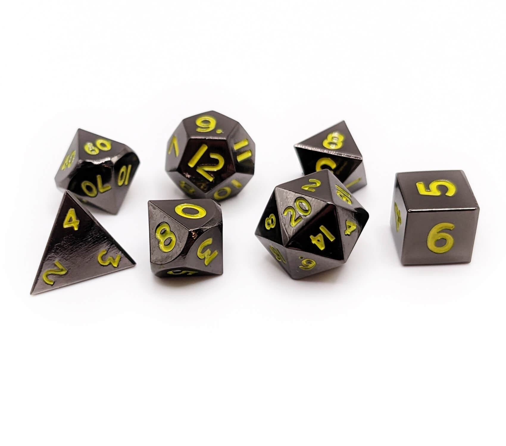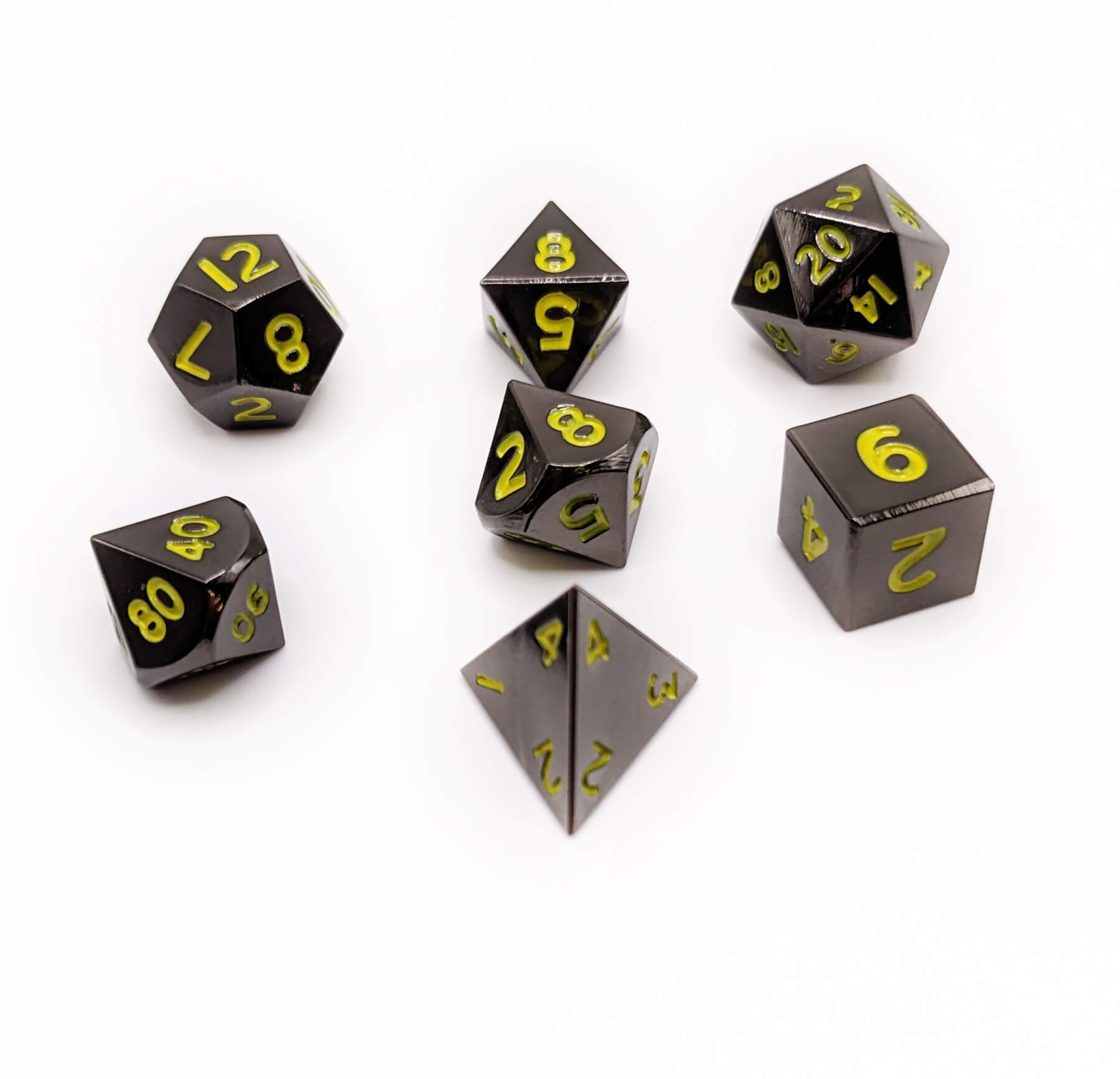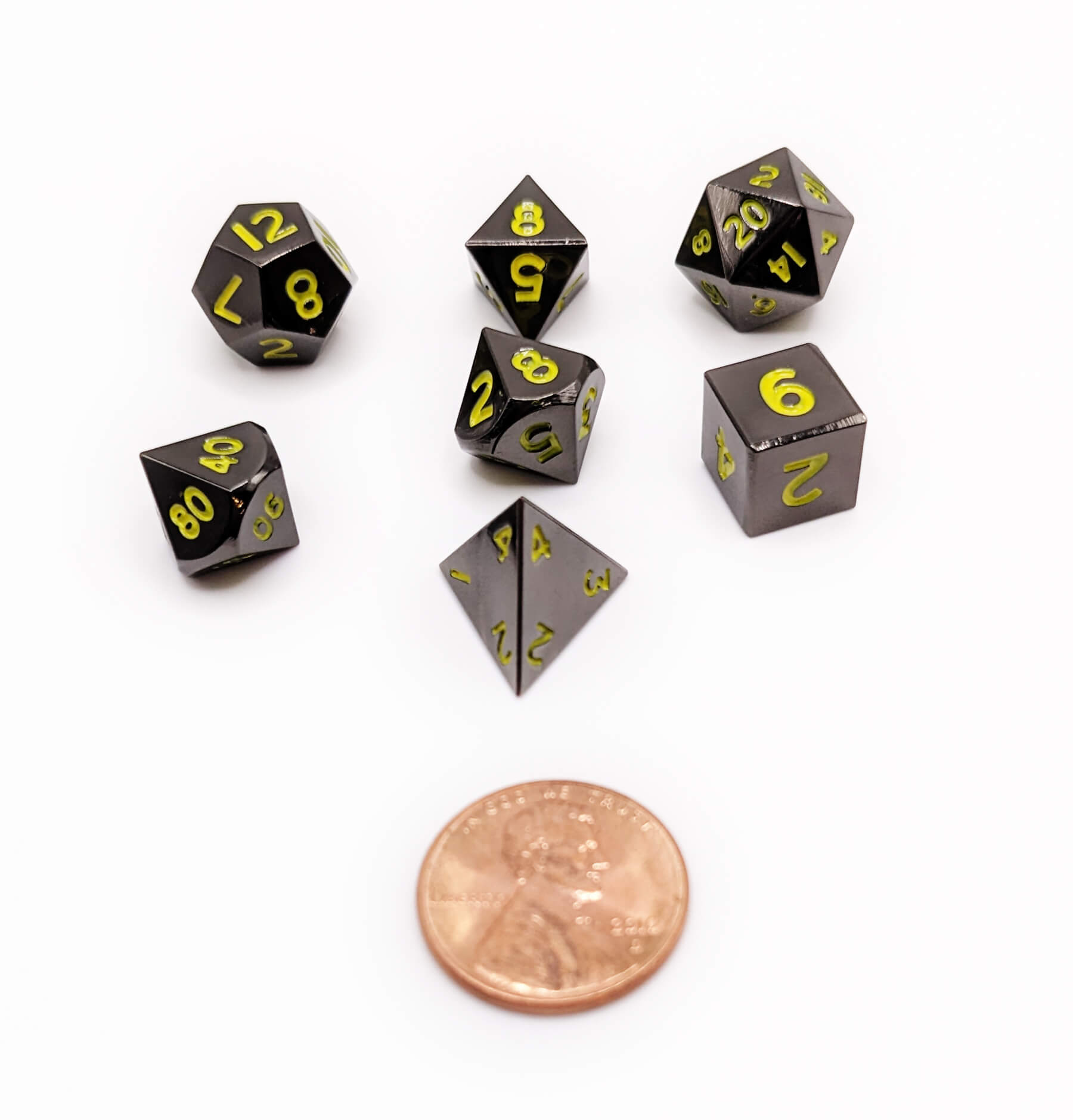 Metal Mini Dice (Black With Yellow Numbers) | 10MM TTRPG Role Playing Game Dice