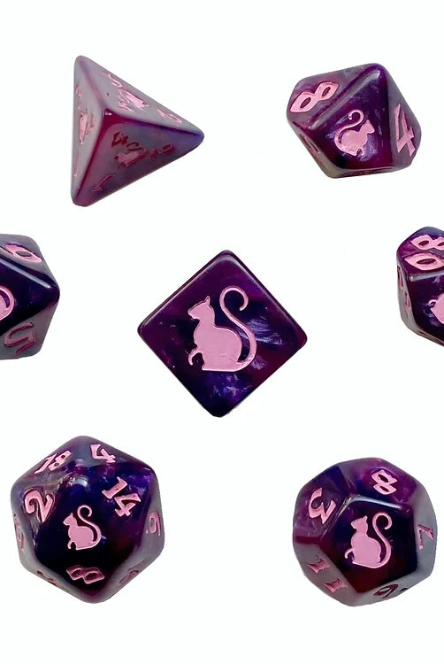 Dark Elf Dice is happy to carry a fantastic selection of tabletop roleplaying game dice from Black Oak Workshop. These amazing RPG dice are perfect for Dungeons & Dragons and all your favorite tabletop roleplaying games. Black Oak Workshop dice are available in a dazzling array of colors and sized slightly larger than your typical game dice. On sale now in both the Iconic Dragon and Kitty-Clacks designs.
