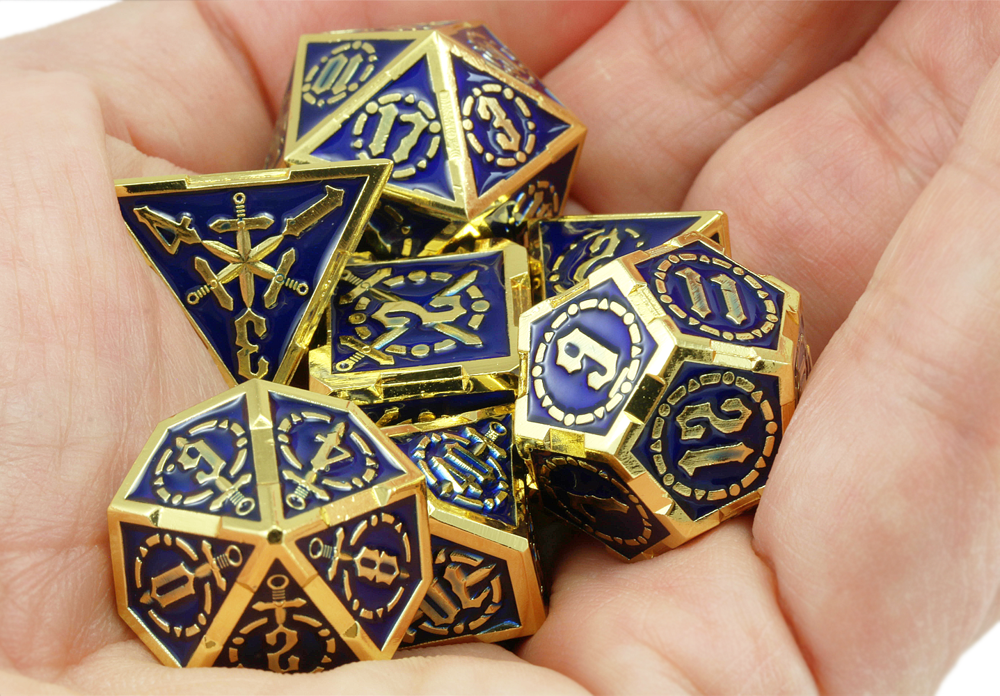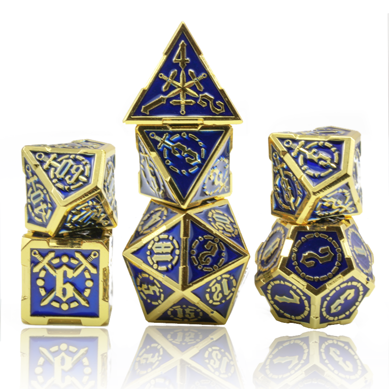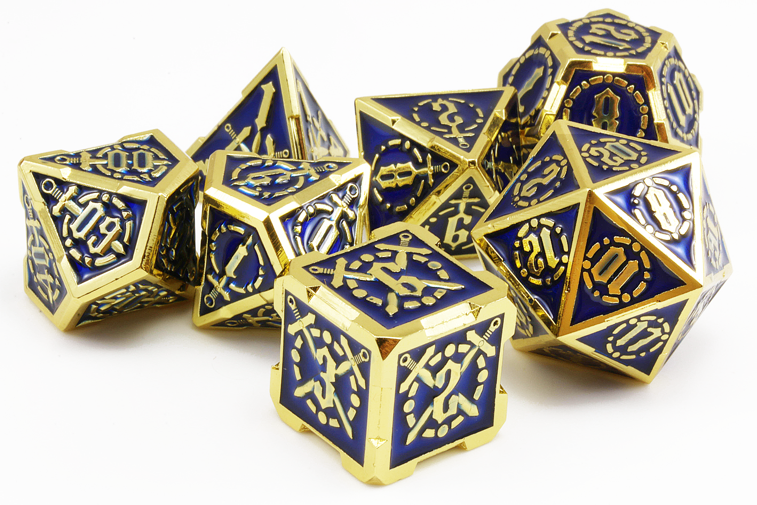 Swordmaster Dice (Bright Gold With Blue) | Metal RPG Role Playing Game Dice