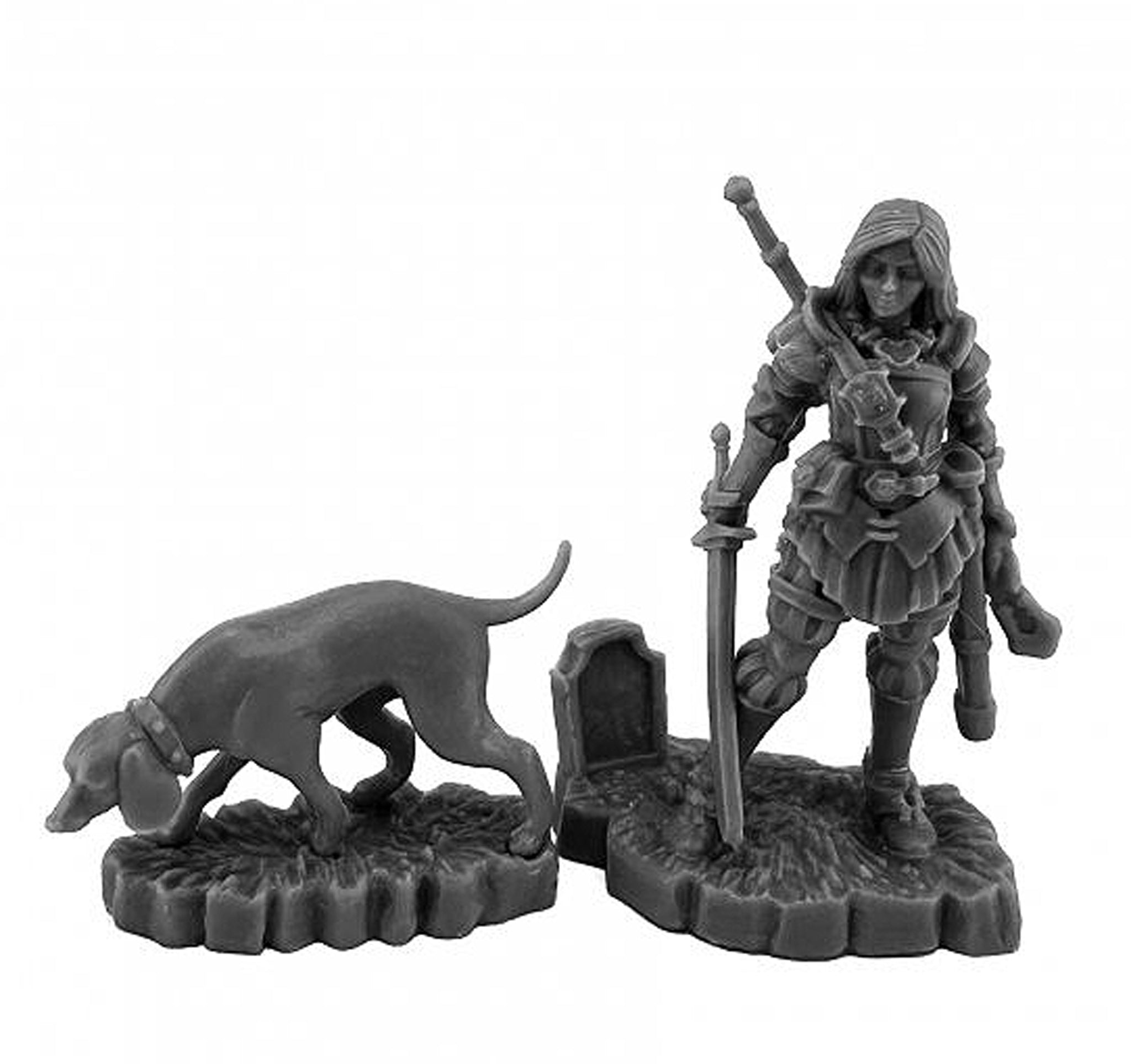 Bones Black Miniatures (Female Ranger And Hound Dog 44248) | Bones USA TTRPG Miniature