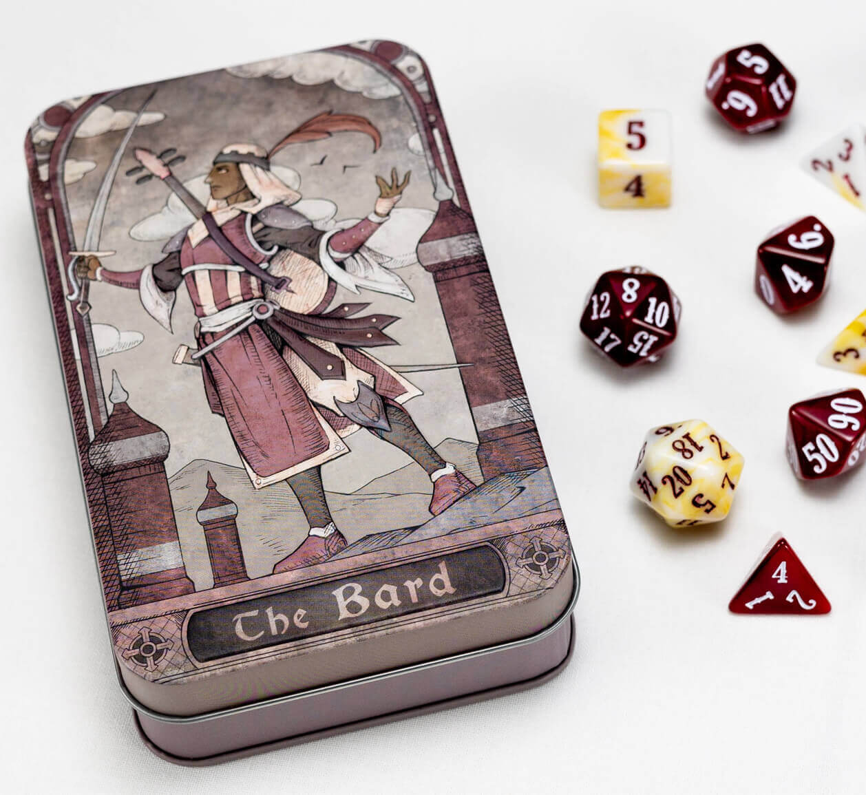 Character Class Dice (The Bard) | TTRPG Dice With Collectible Tin