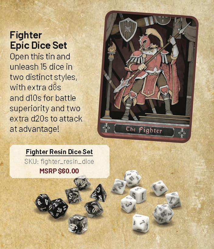 Epic Character Class Dice (The Fighter) | TTRPG Dice With Rolling Tray