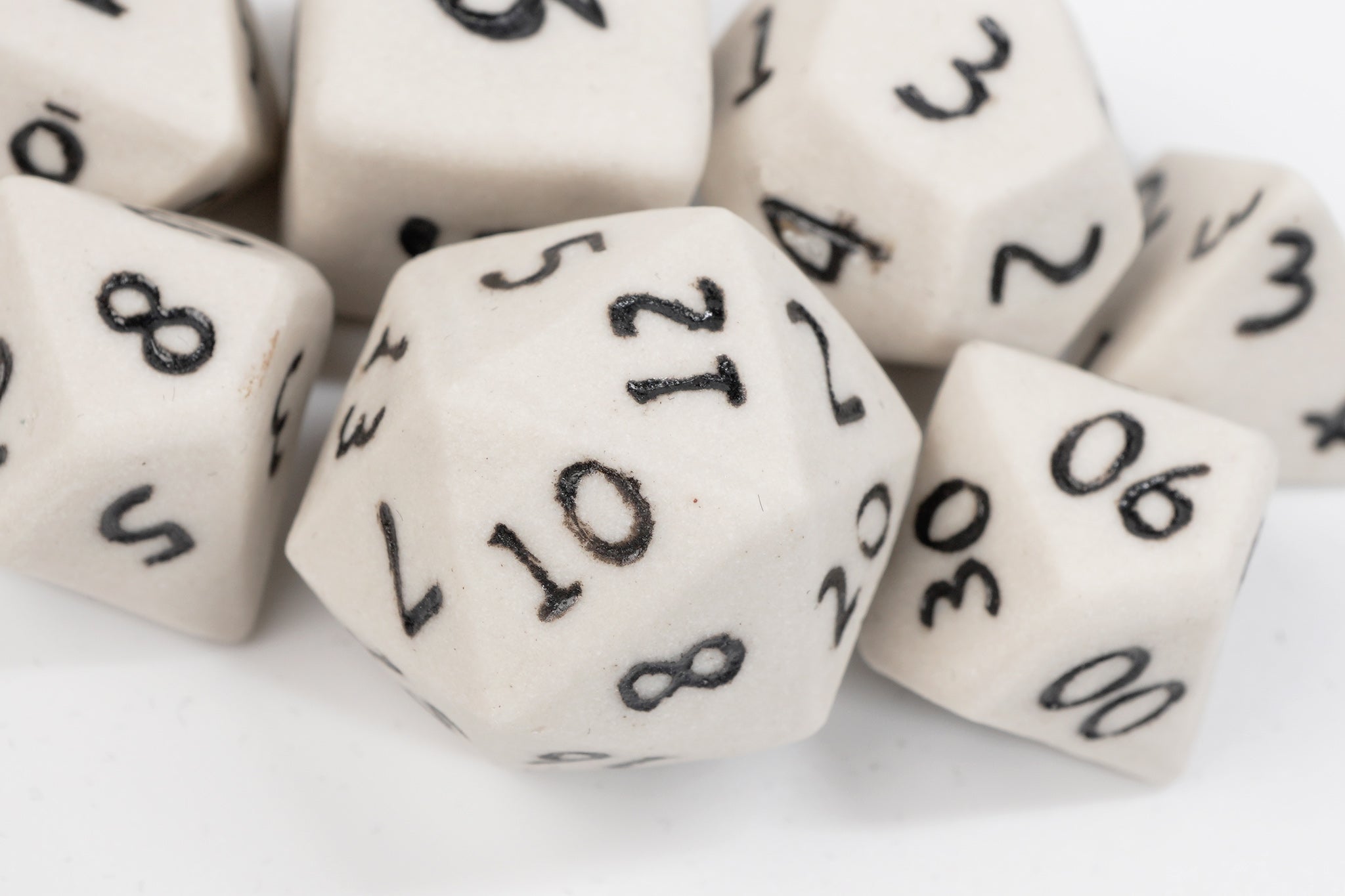 If you've never gamed with ceramic dice you're in for a treat. These dice look, feel, and sound amazing! Individually hand-crafted from a mid-fire clay body, ceramic dice are super durable and play great.