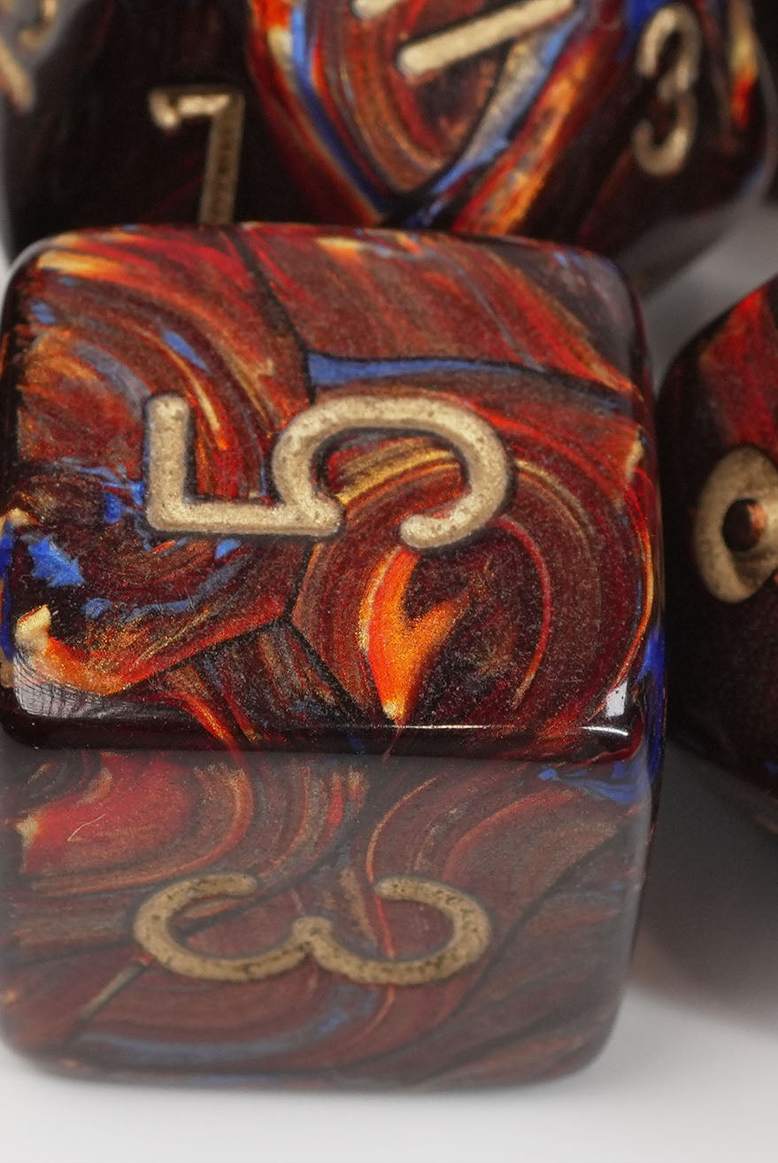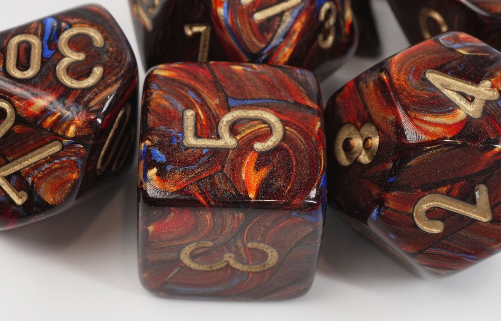 I’ll only buy dice from Dark Elf Dice. I love these dice. They are gorgeous and full of bounce ;). Dark elf dice has amazing customer service and I’ll only buy from them.