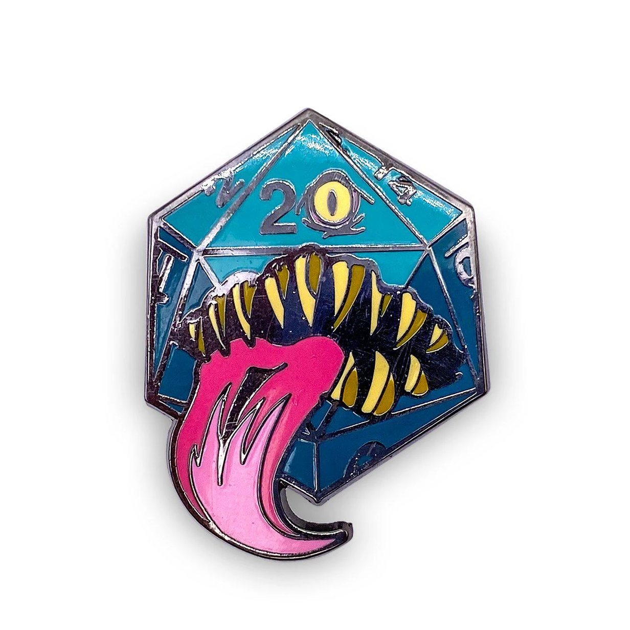 Mimic D20 Enamel Pin (Teal) | TTRPG Game Accessory