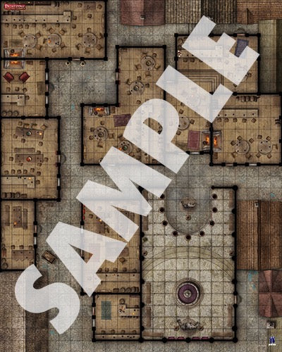 Paint the town red with Flip-Mat Classics: Pub Crawl, a gorgeous double-sided battle-scale map of two tavern-filled street scenes! One side features several bars and taverns in a nice part of town, while the flip-side extends the scene on Flip-Mat: Warehouse to flesh out the seedier side of town! Both sides show interiors and exteriors, for when the inevitable brawls spill out onto the city streets!