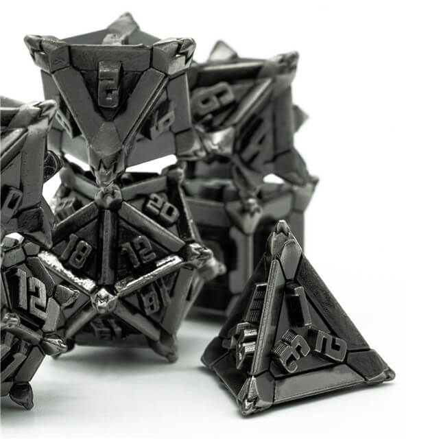 Kinetic Destroyer Dice (Ancient Silver) | Metal TTRPG Role Playing Game Dice