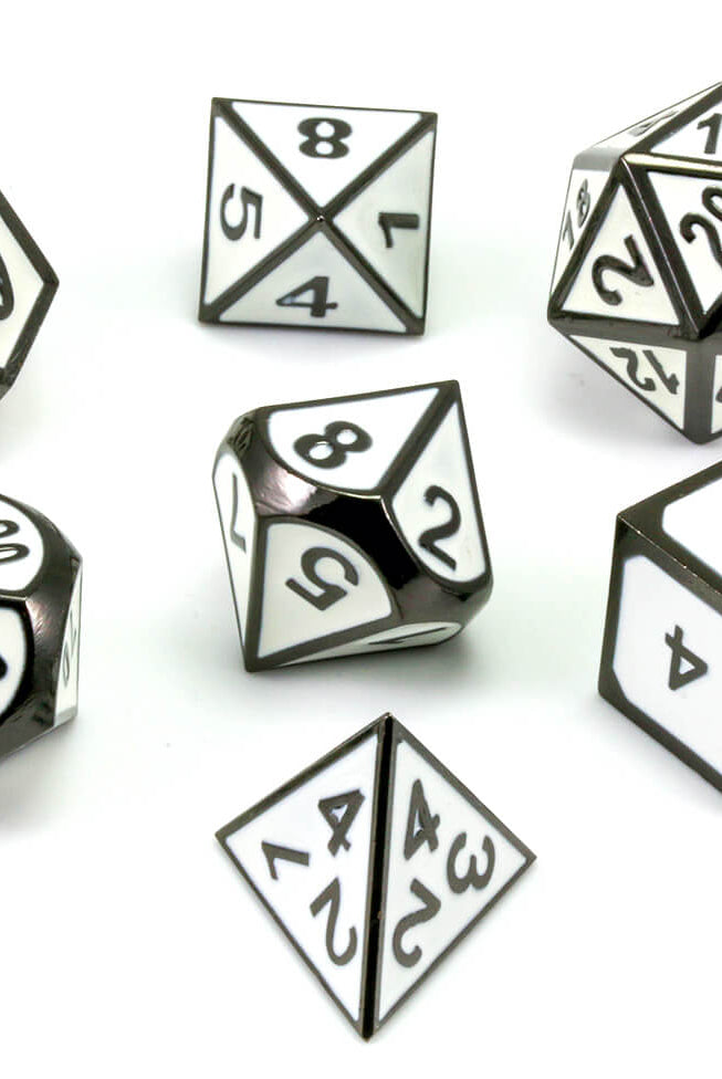 Dark Elf Dice is your source for metal dice used for Dungeons & Dragons and all your favorite tabletop roleplaying games. We offer a huge selection of metal DnD dice sets for every budget. Solid, heavy, durable and beautiful -- our dice can handle any adventure and come in a variety of metallic finishes and effects.