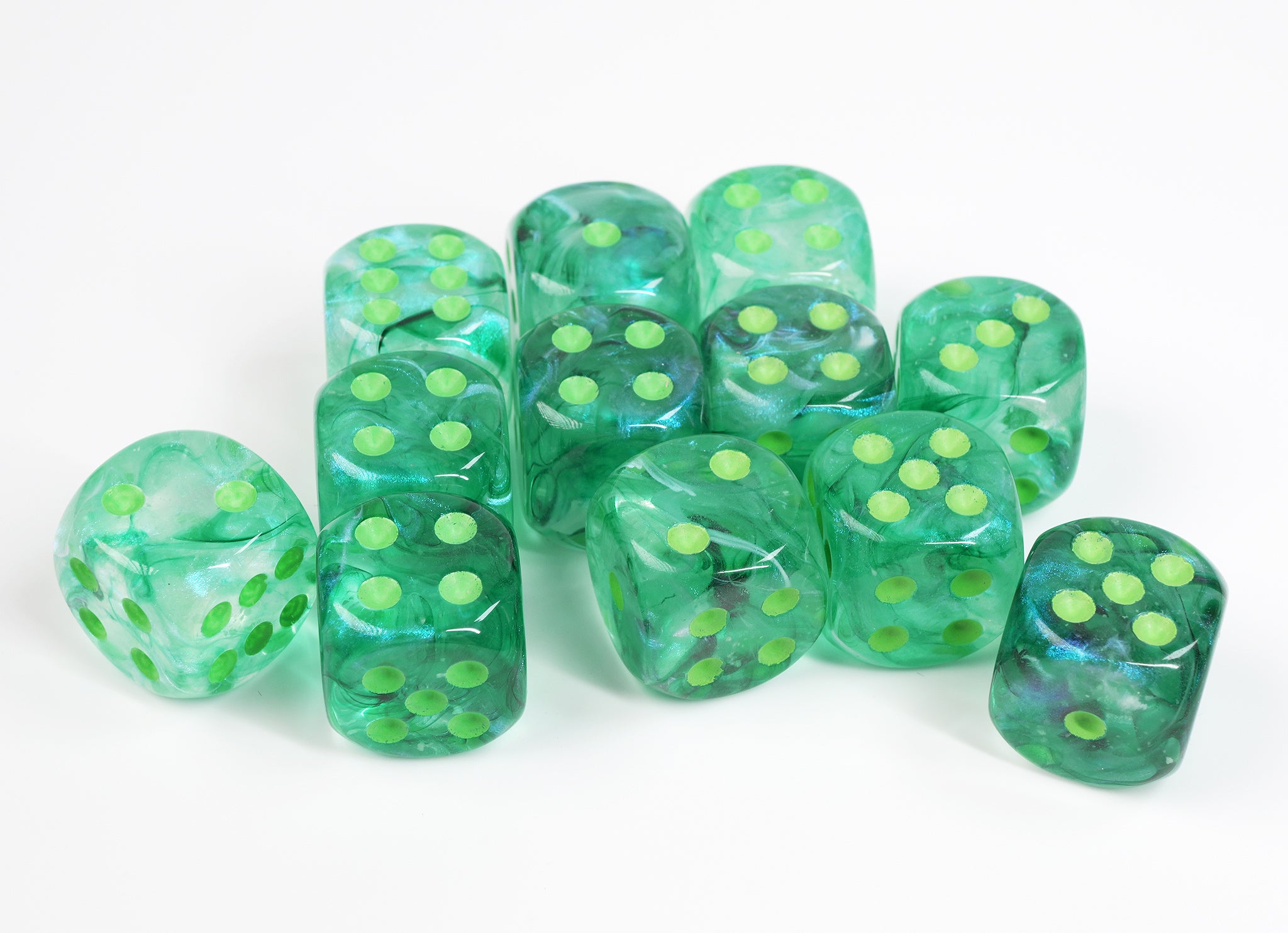 Borealis Dice (Kelp With Light Green Pips) | 12 x D6 Dice Set