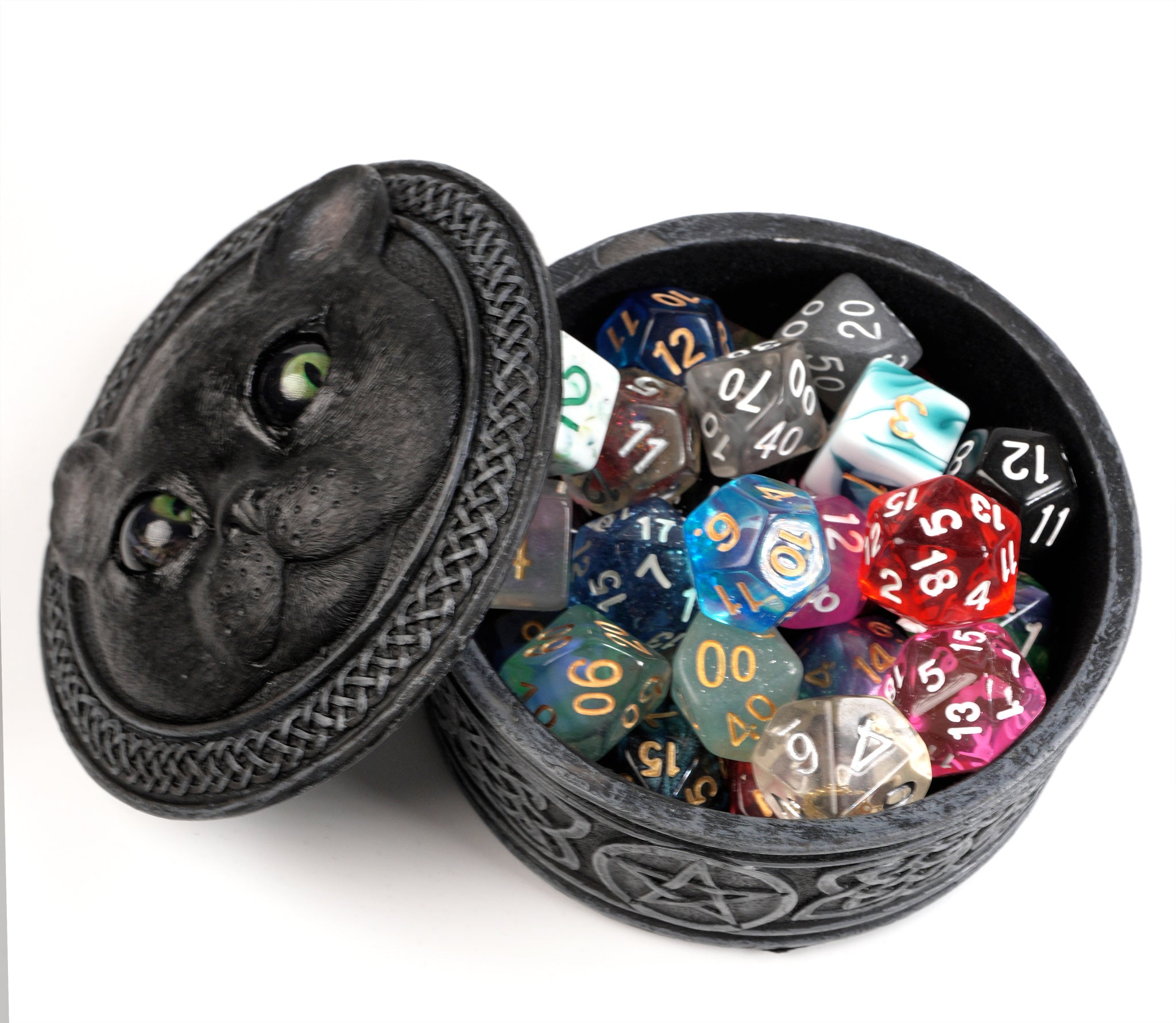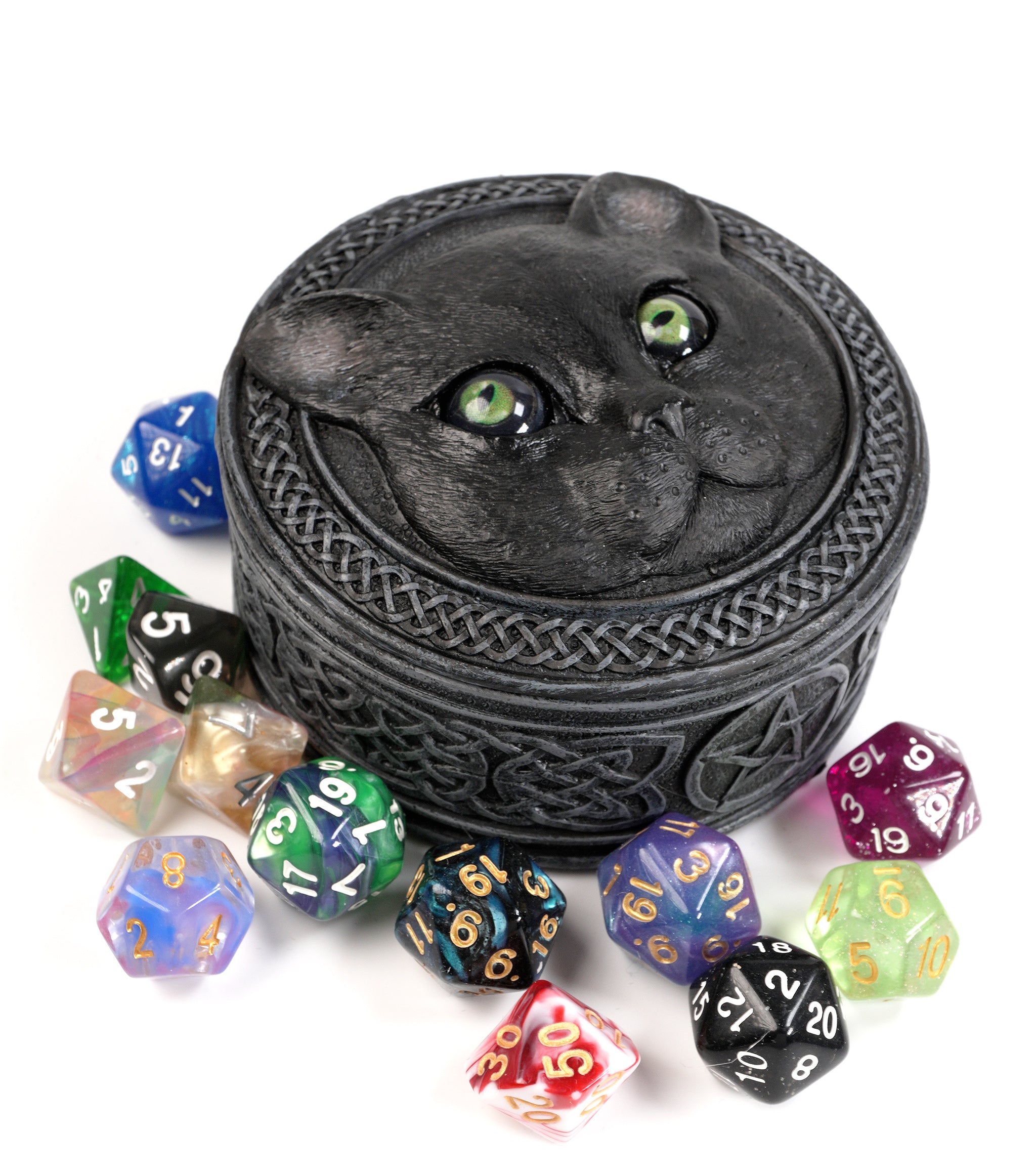 Black Cat Dice Box With Rolling Eyes | TTRPG Dice Storage Accessory