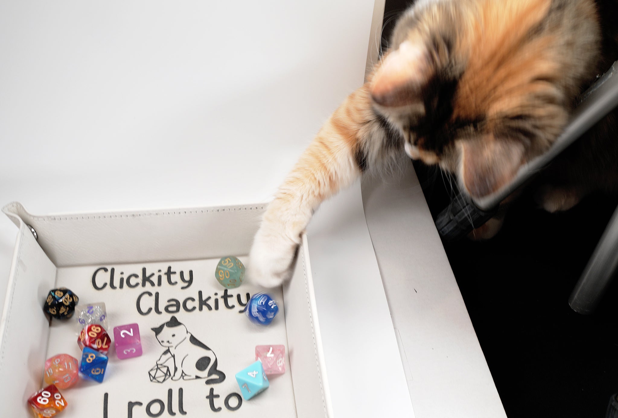 Folding Dice Tray (Cat Clickity Clackity) - Choose Your Color | Tray For TTRPG Dice Rolls
