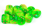 Gemini Dice (Plasma Green And Teal With Orange Pips) | 12 x D6 Dice Set