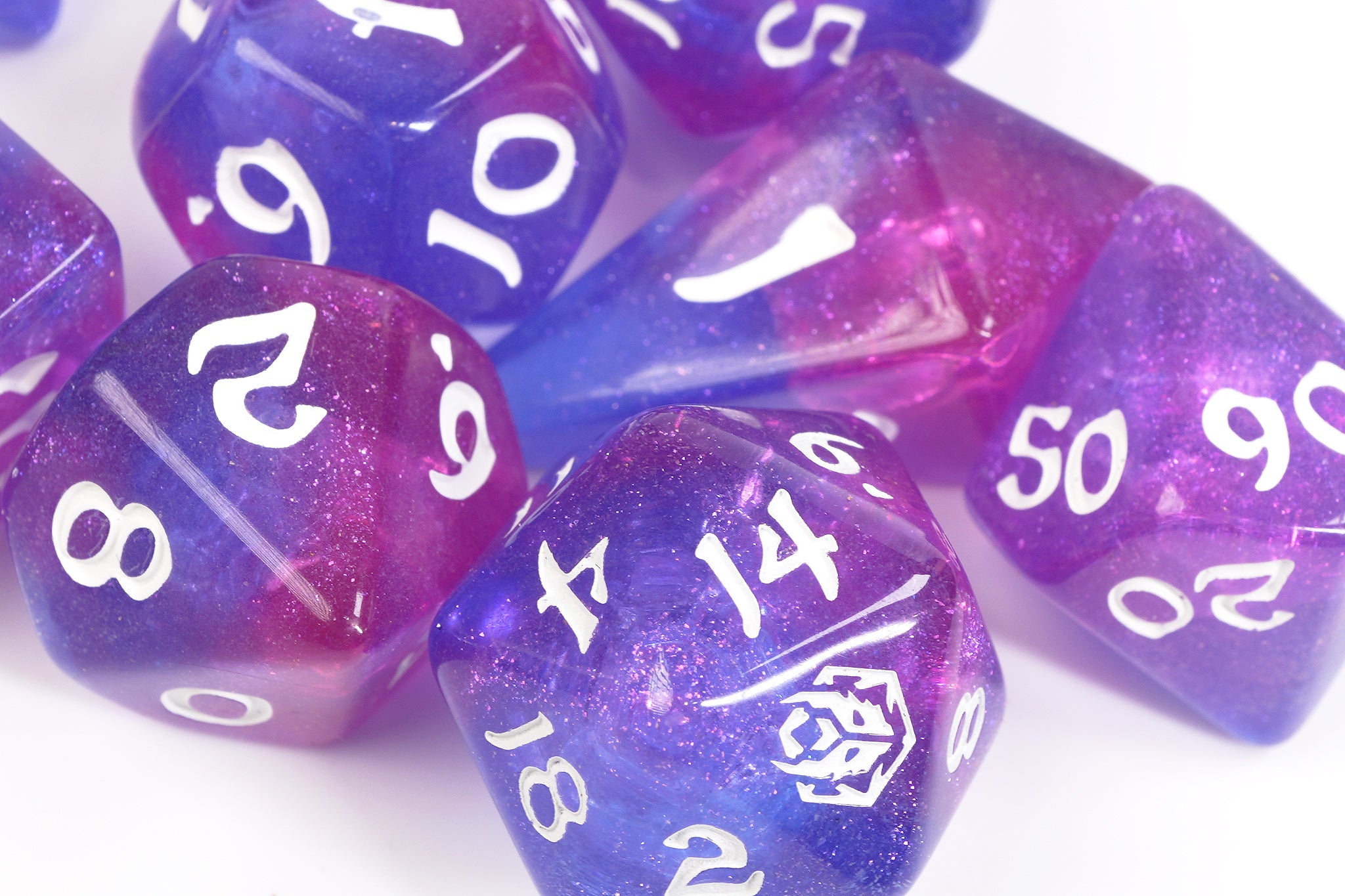 Dance with enchantment using this whimsical 8-piece dice set, bursting with delicate pinks, soft purples, and shimmering accents that capture the magic of fairy wings. These Wyrmforged dice bring a touch of mischief and wonder to every roll, ideal for fey-filled campaigns, lighthearted adventures, or any story where magic sparkles brighter than steel. The vibrant yet elegant design stands out beautifully on any gaming table, while the quality construction guarantees smooth rolls session after session. Let these dice sprinkle a little fairy dust on your next adventure—your characters (and your dice rolls) will thank you.