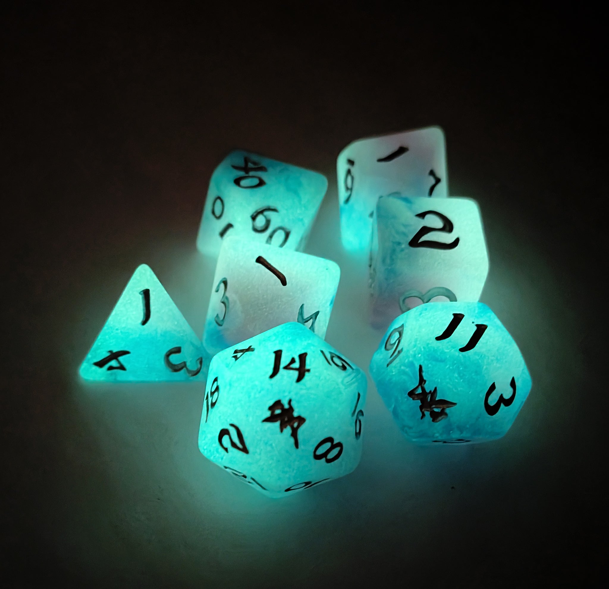- Dice glow when charged under a bright light
