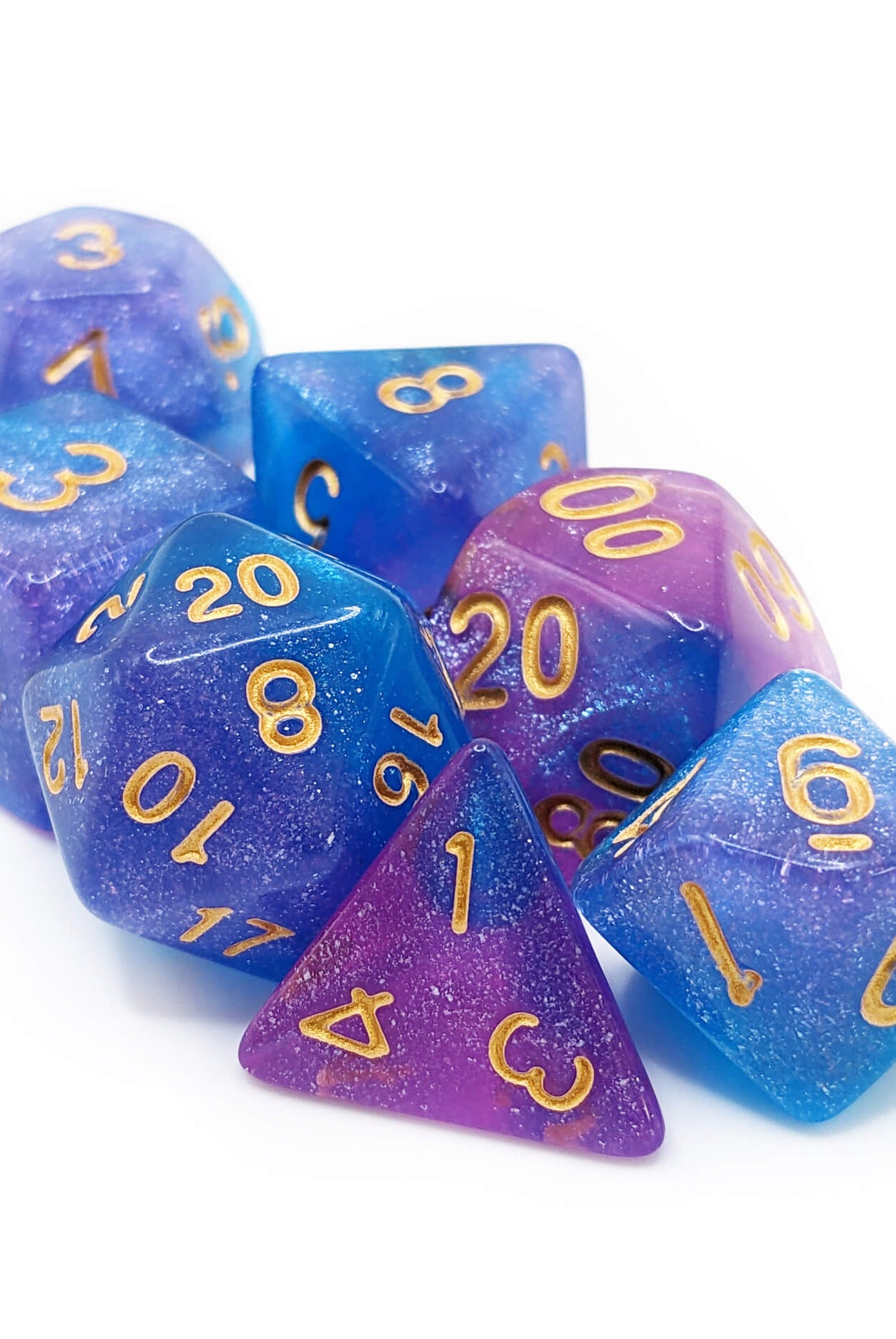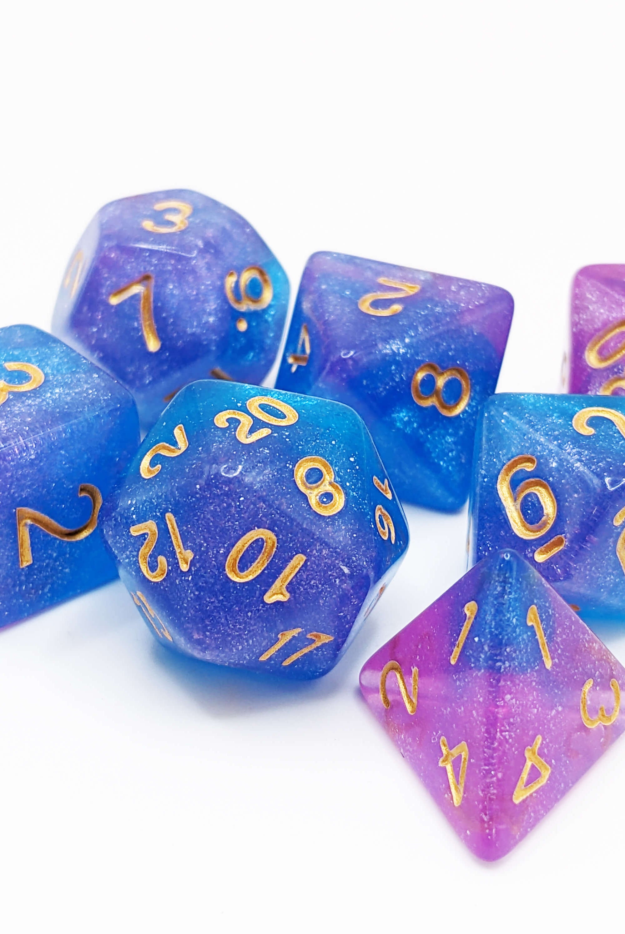 Blended dice are a two-color mixture of intense hues. Great for both gamers and collectors.