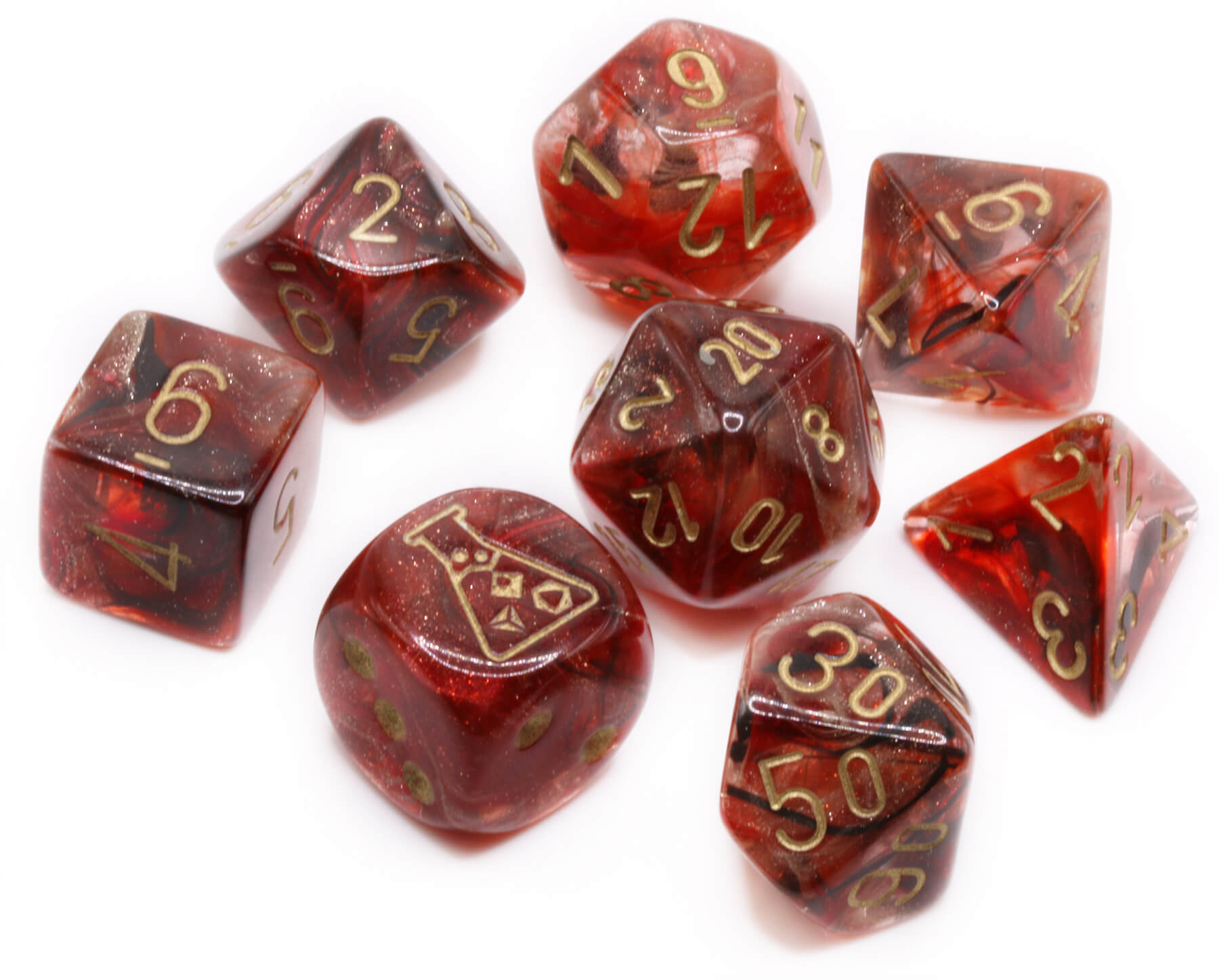 Chessex Lab Dice VIII are a great experiment! To determine what dice the company will later produce as part of their normal catalog, Chessex is releasing six special sets of dice in a limited production run. The best selling dice will later be incorporated in their product lineup. The others will no longer be produced. If you like a particular color, this may be your only chance to grab a set. All the dice in this limited, eight series release comes in a promotional "test tube" with the Chessex Lab Dice label.