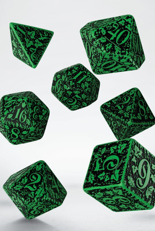 Forest dice by Q-Workshop will handle any adventure. Whether you're exploring the ancient ruins of a lost civilization or battling fierce Orcs in the wild, these dice roll true and will tell your unique story. Each set has all the dice you need for your favorite role playing games: d4, d6, d8, d10, d percentile, d12, and d20.