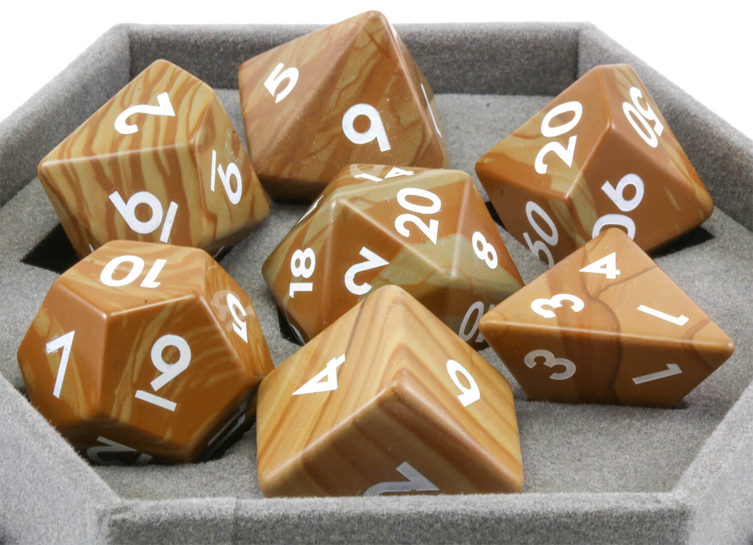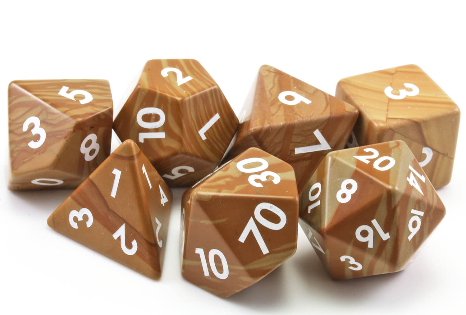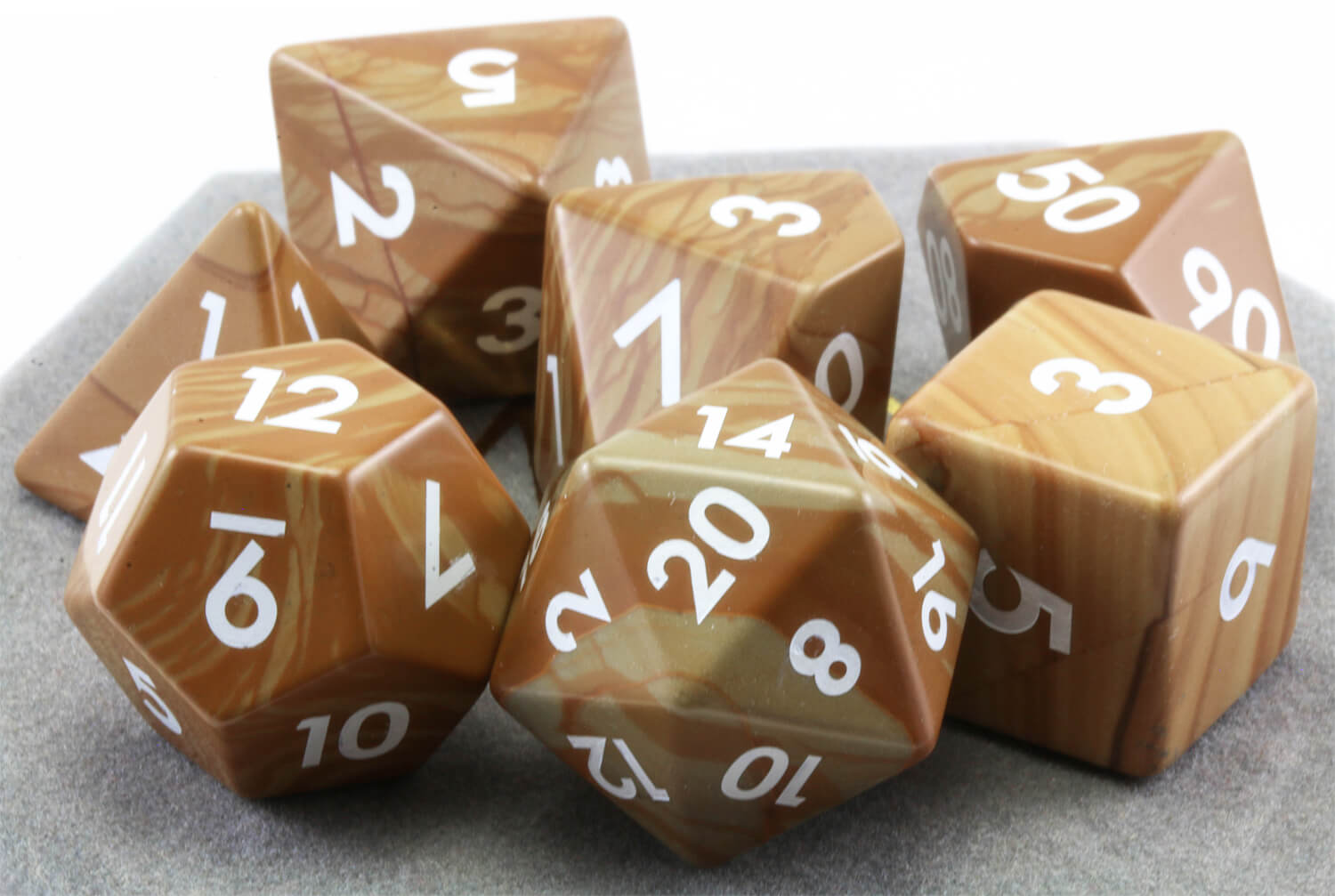 If you're looking for premium dice then look no further! This 7-piece dice set is crafted from genuine Serpeggiante marble. The dice are heavy in the hand and look stunning. Use the dice in your next RPG campaign or as an awesome conversation piece.