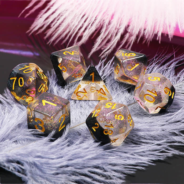 Each 7-piece Snow Globe set includes all your favorite RPG dice: d4, d6, d8, d10, d00, d12, and d20. The numbers are inked in gold for easy reading after each ability check and saving throw. Great for Dungeons and Dragons, Pathfinder, and all the best tabletop role playing games.