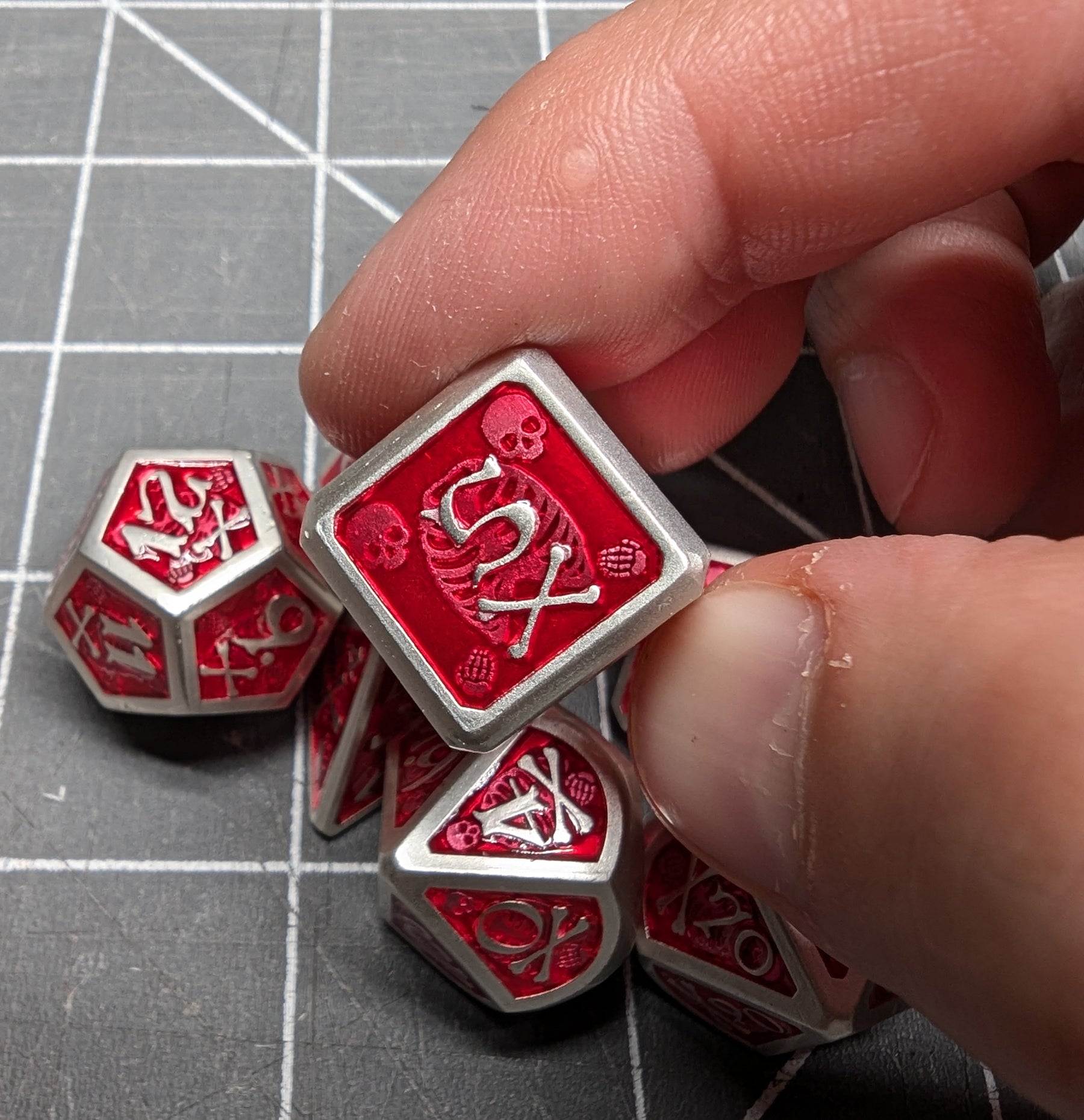 Skeleton Dice (Bright Blood Red) | Metal RPG Role Playing Game Dice