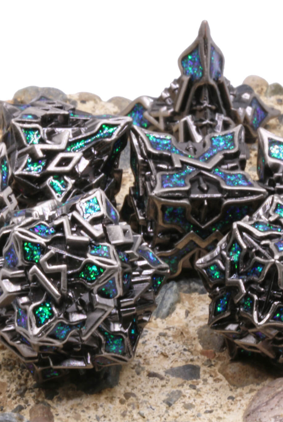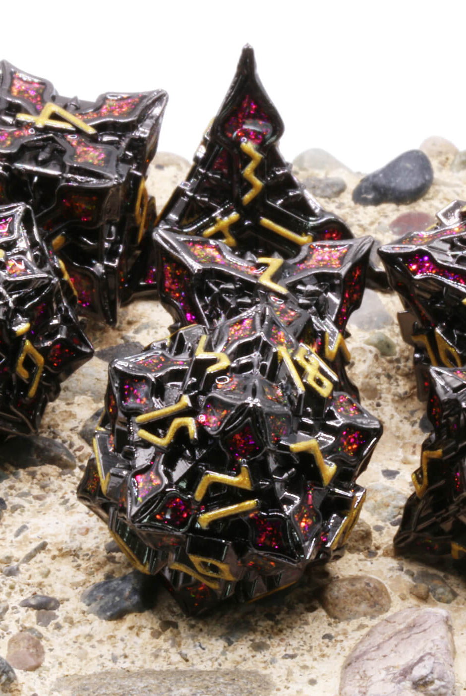 Dark Elf Dice is your source for metal dice used for Dungeons & Dragons and all your favorite tabletop roleplaying games. We offer a huge selection of metal DnD dice sets for every budget. Solid, heavy, durable and beautiful -- our dice can handle any adventure and come in a variety of metallic finishes and effects.
