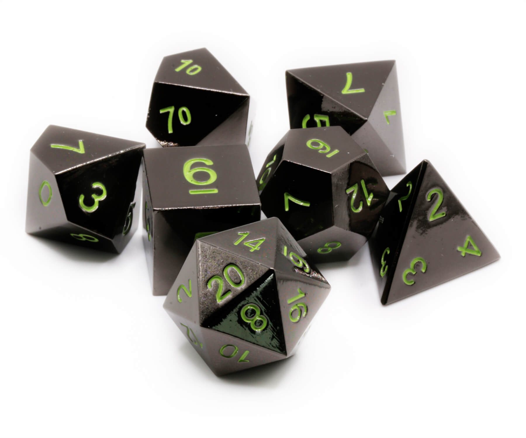 Metal Dice Set (Shiny Black With Goblin Green Numbers)