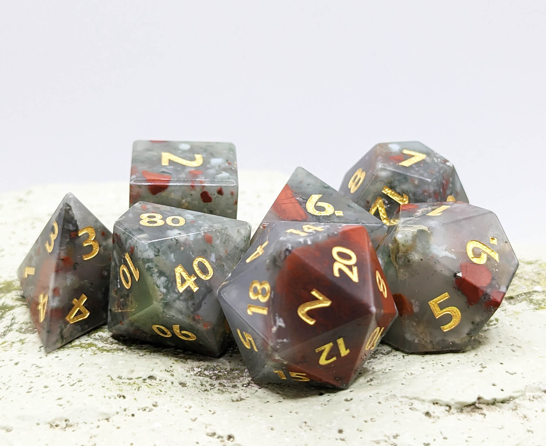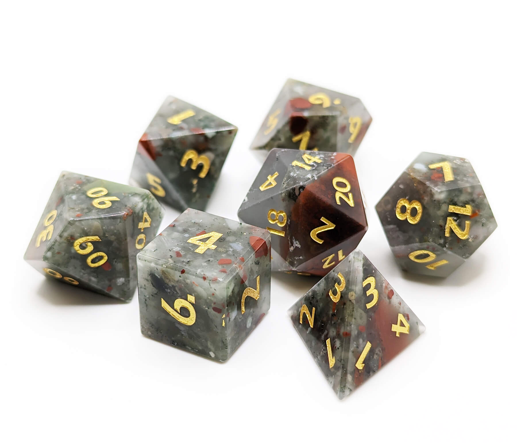 Gemstone Dice (African Bloodstone) | 7pc RPG Role Playing Game Dice Set