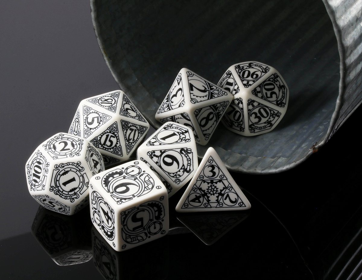 Steampunk Dice (White) | RPG Role Playing Game Dice Set