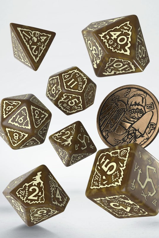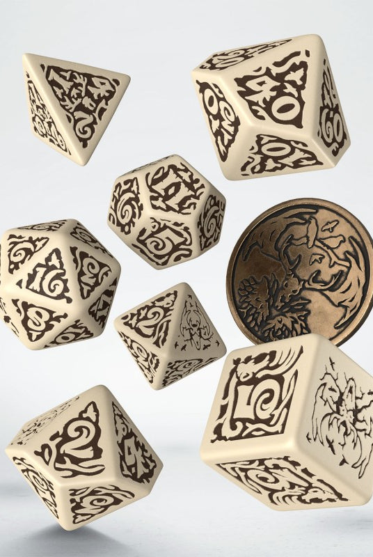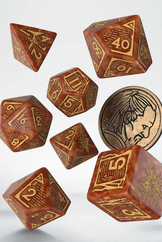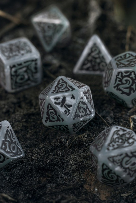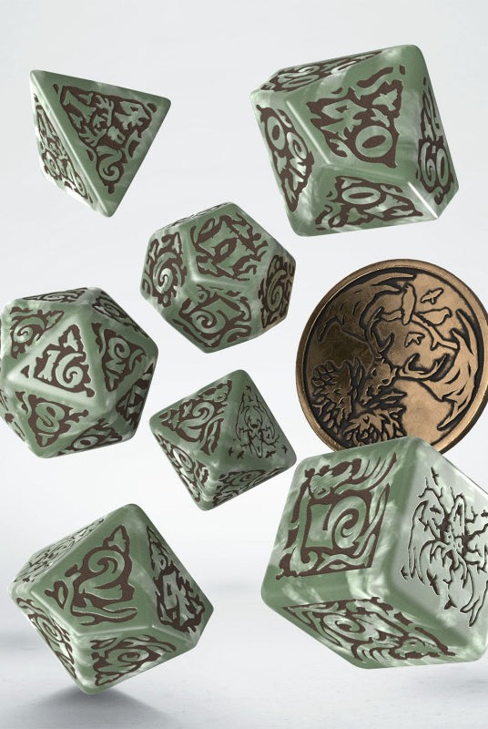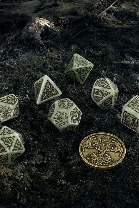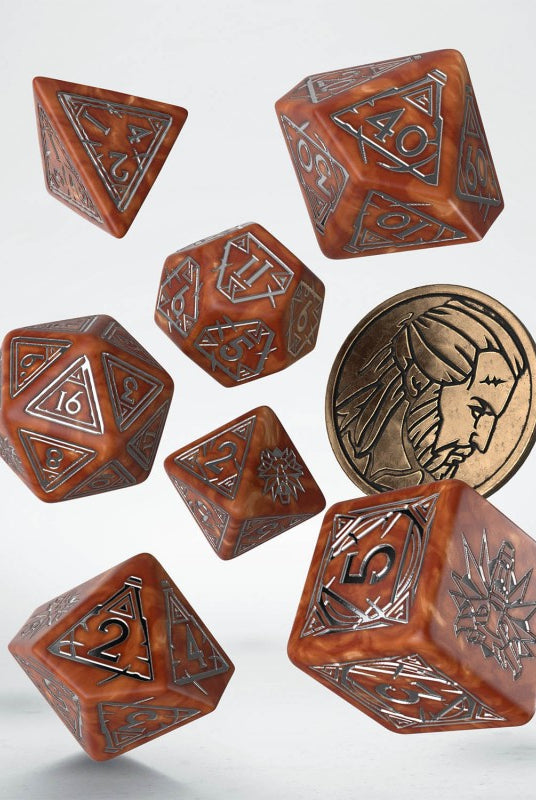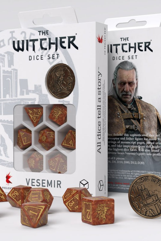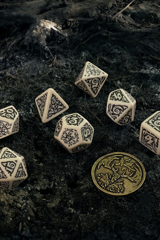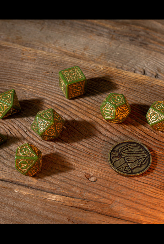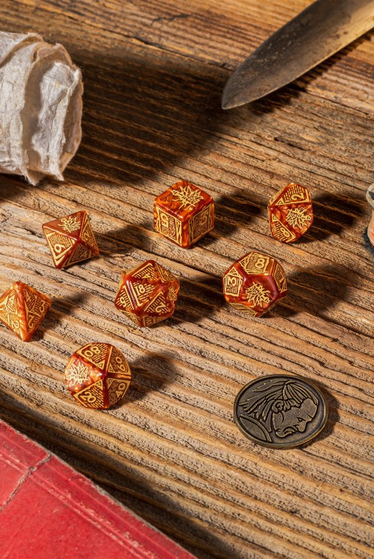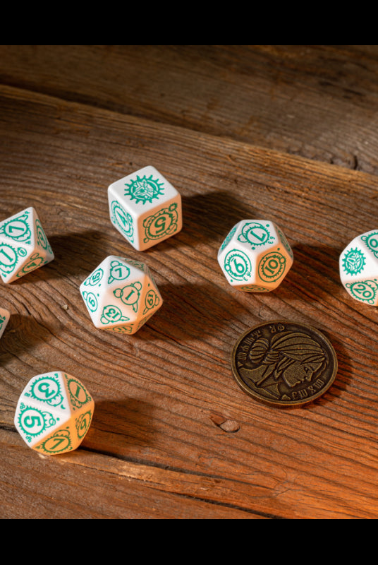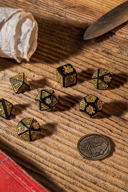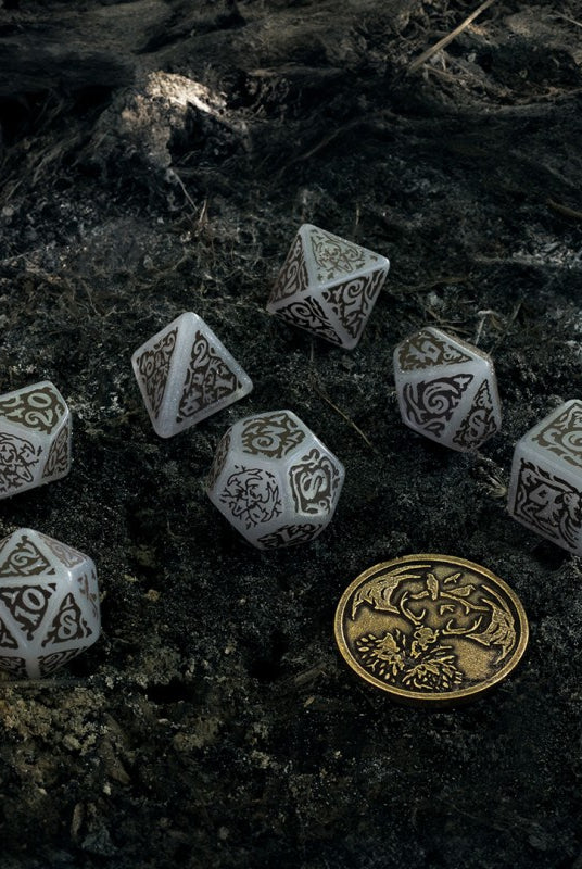 You don't have to be the White Wolf to enjoy these amazing dice inspired by The Witcher franchise. Expertly crafted by the wizards at Q-Workshop, these gorgeous dice come complete with a metal coin bearing the likeness of one of the series main characters: Geralt, Yennefer, or Dandelion.