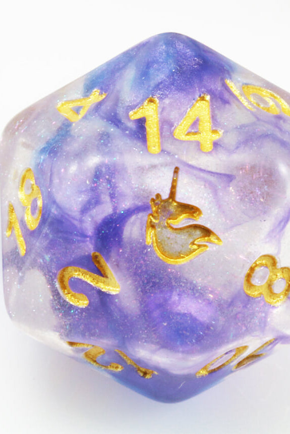 Dark Elf Dice is happy to carry an amazing assortment of Unicorn dice. Perfect dice for all your favorite tabletop role playing games. These glittery dice appear to be infused with magic! The number 20 has been replaced with a unicorn image to make the dice that much more special.