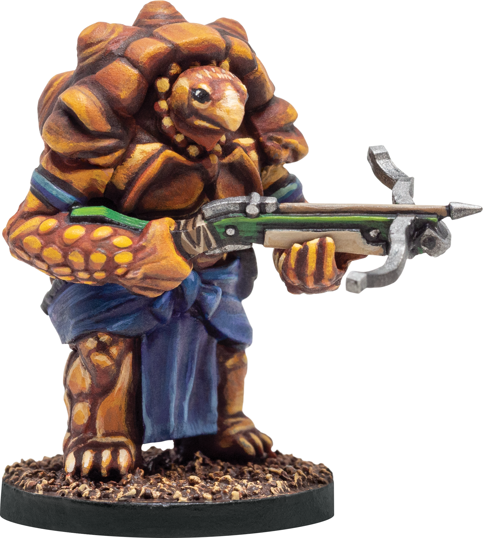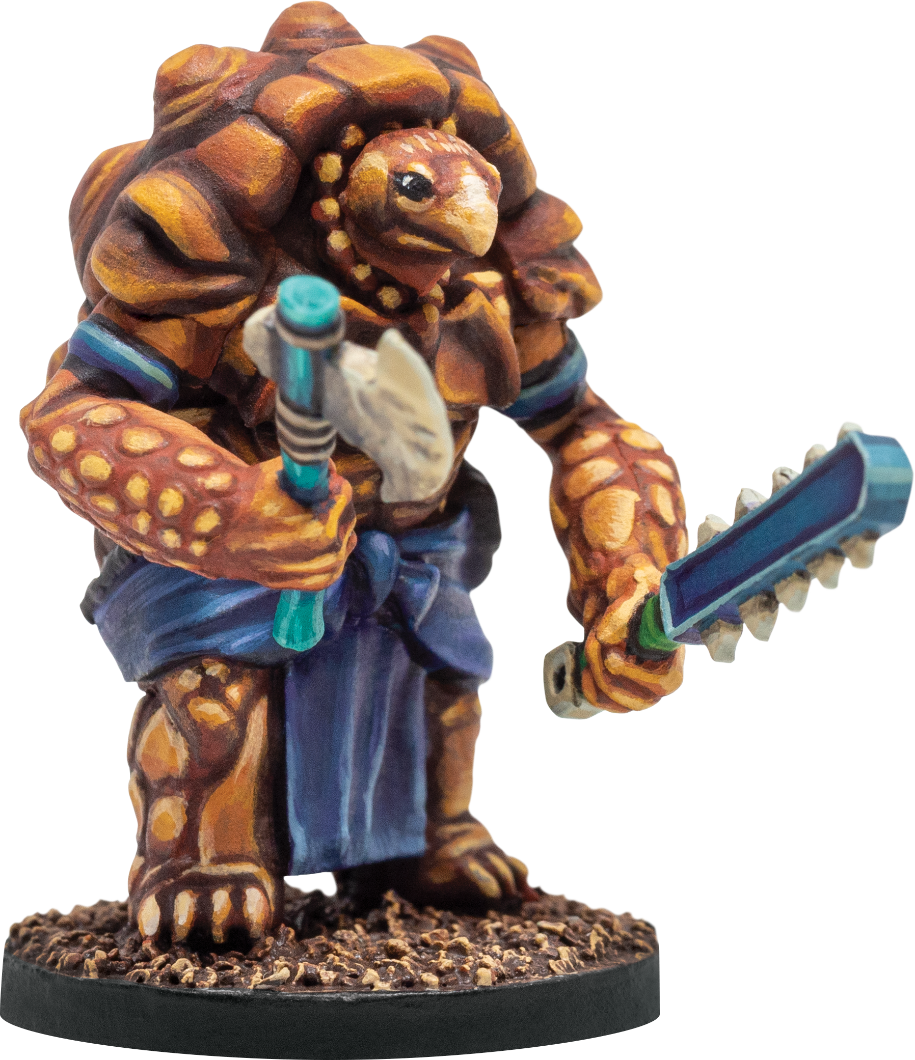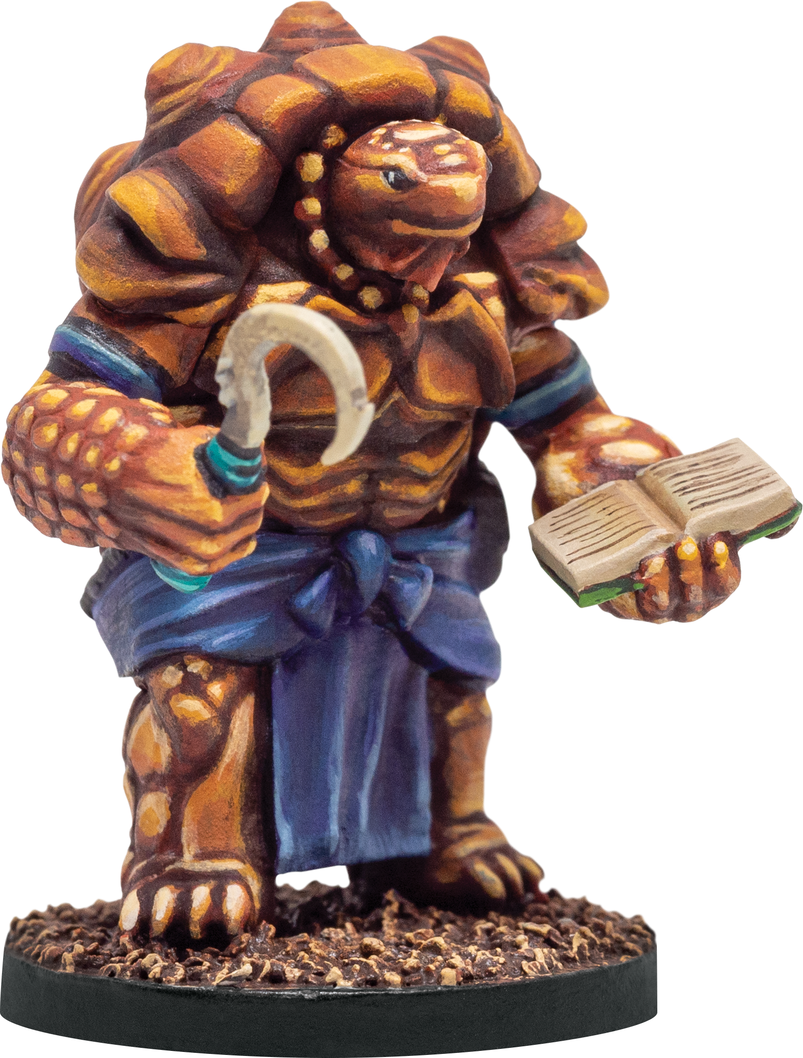 Tlah-Loke the Turtlefolk comes with a range of customizable options include two-handed battleaxe, crossbow, club, and scythe and book.