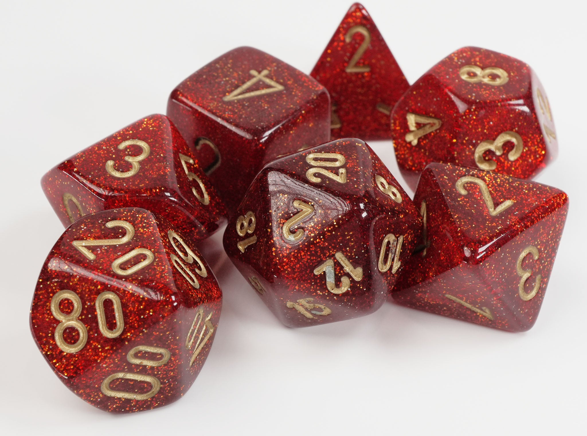 Roll in style with these stunning Chessex Mega-Hedrals—oversized dice that command attention at any gaming table. The mesmerizing ruby glitter and gold numbers catch the light with every toss, adding sparkle and drama to your campaigns. Perfect for dungeon masters who want their dice to be as legendary as their storytelling, these jumbo polyhedral sets deliver both visual impact and reliable performance. Whether you're settling epic battles or determining fate, these beauties make every roll feel momentous. Elevate your tabletop experience with dice that shine as bright as your imagination.