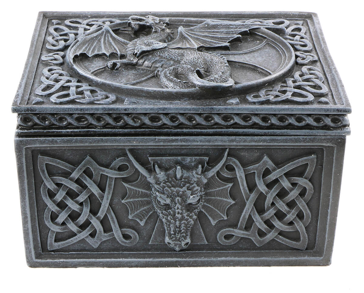 Featuring a gorgeous dragon design, this large dice box is worthy of any adventurer! Store and transport your favorite dice to your next gaming event and be the envy of your fellow players.