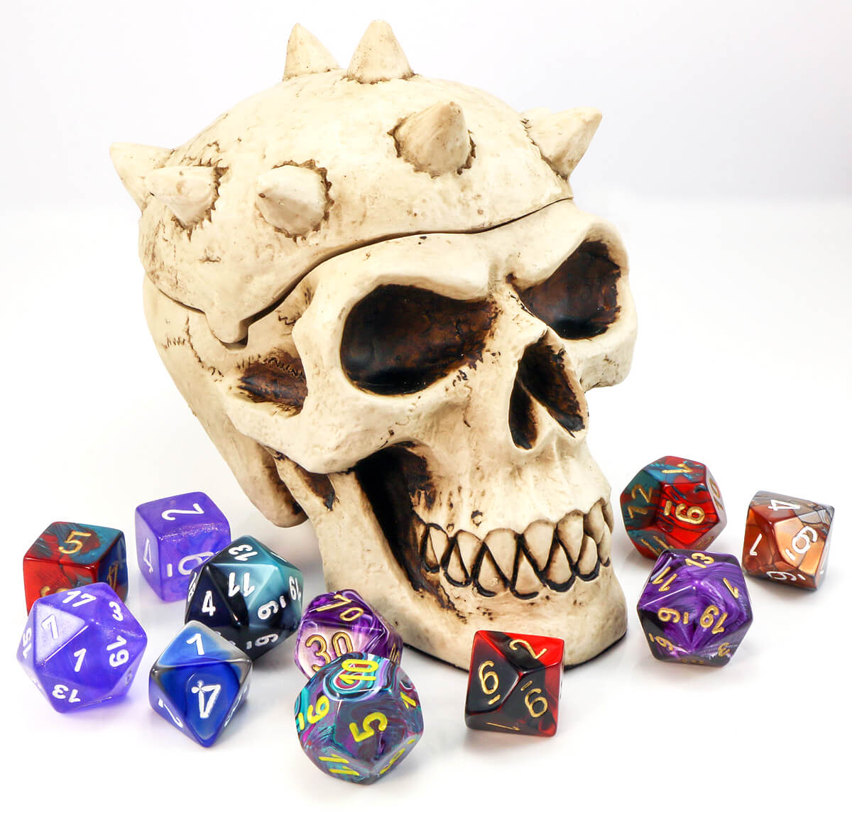 Ghoulishly awesome ! The Monster Skull dice box is a unique (and dare we say amazing) way to store your favorite dice on game night. Remove the lid and you have space to keep about three sets of dice.