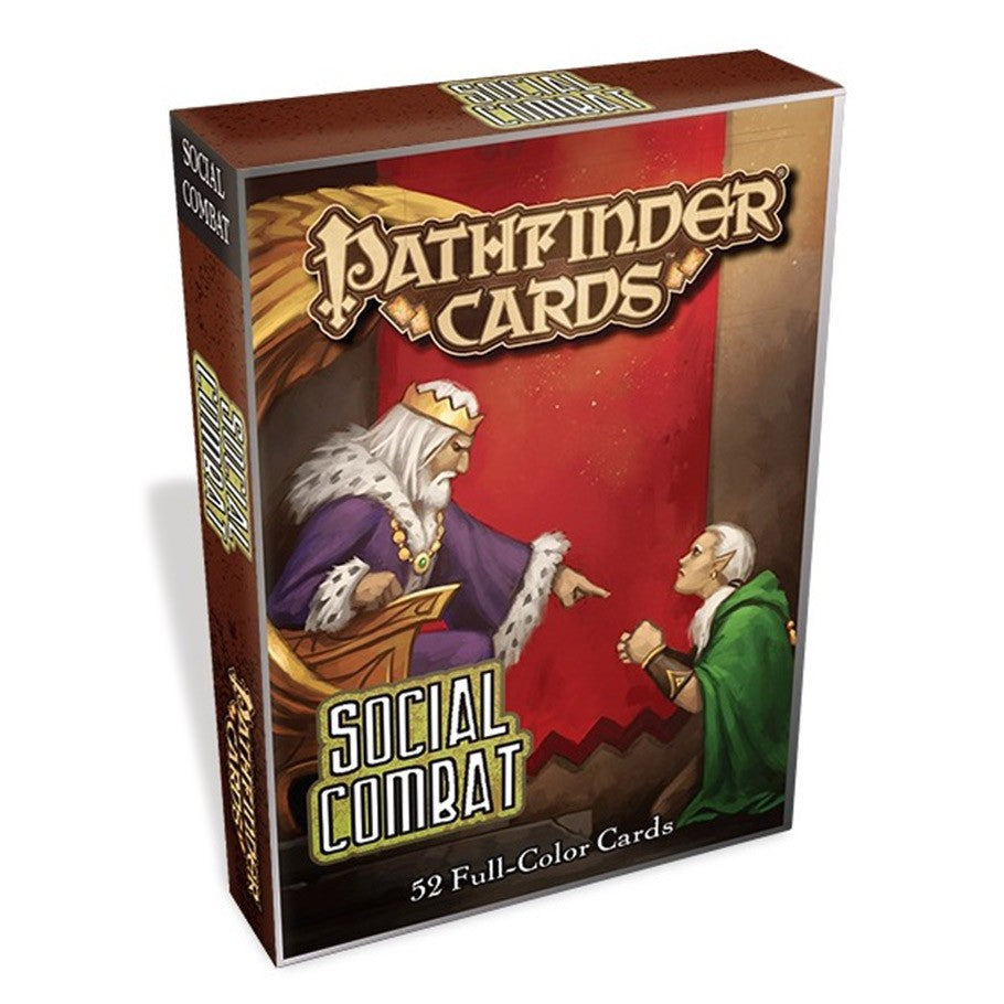 Where swords and spells may fail, a sharp mind and a quick tongue can triumph! This 52-card deck introduces an exciting new method to infuse social intrigue into any Pathfinder campaign. The Social Combat Deck uses a system similar to Chase Cards, but instead of catching or escaping foes, heroes use guile, charm, and even treachery to win friends and manipulate foes. Every card presents a social challenge to face, and a number of ways to win the day with words and charm instead of brute force and spell power. This is a perfect supplement for campaigns where intrigue, skullduggery, and rhetorical flourish take center stage!