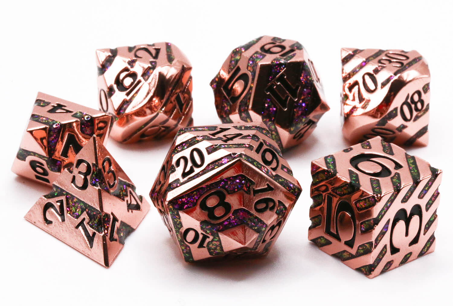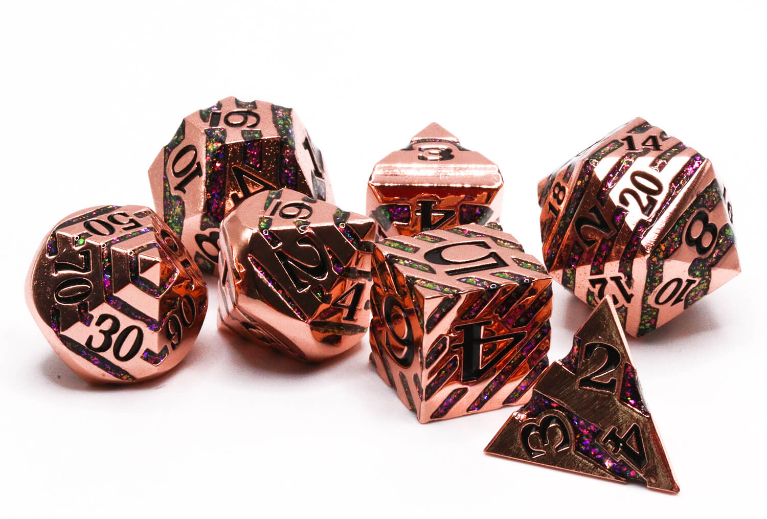 Planar Infusion Dice (Bright Copper And Prismatic Glitter) | Metal RPG Role Playing Game Dice