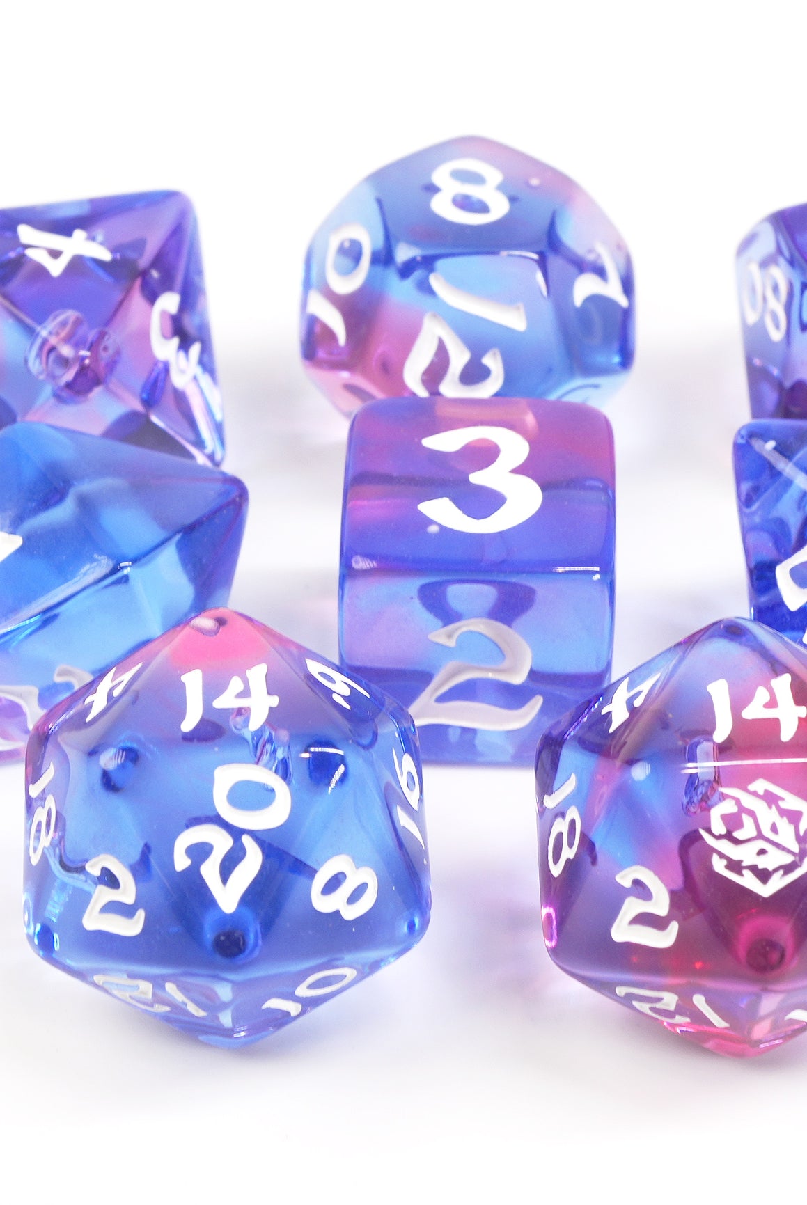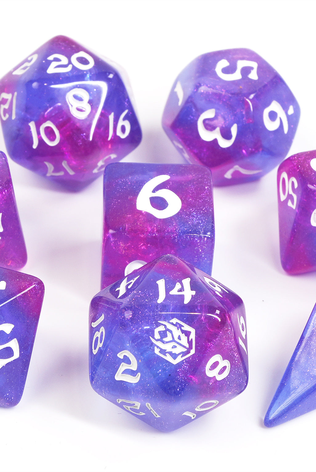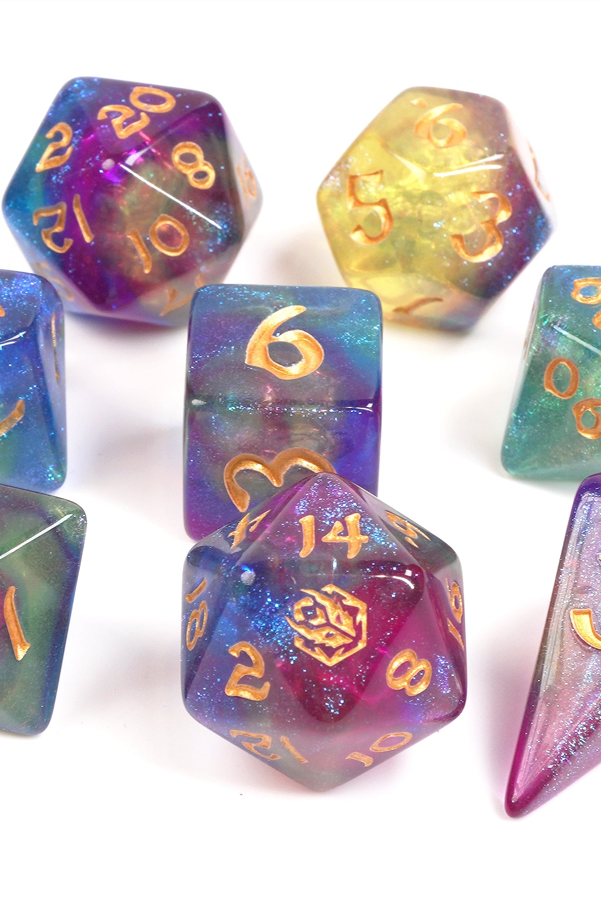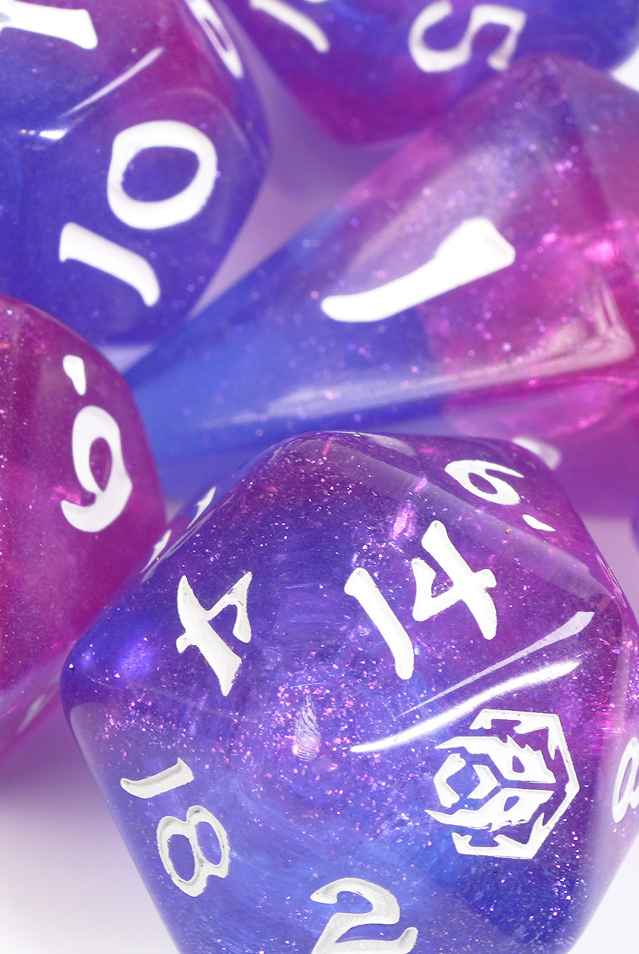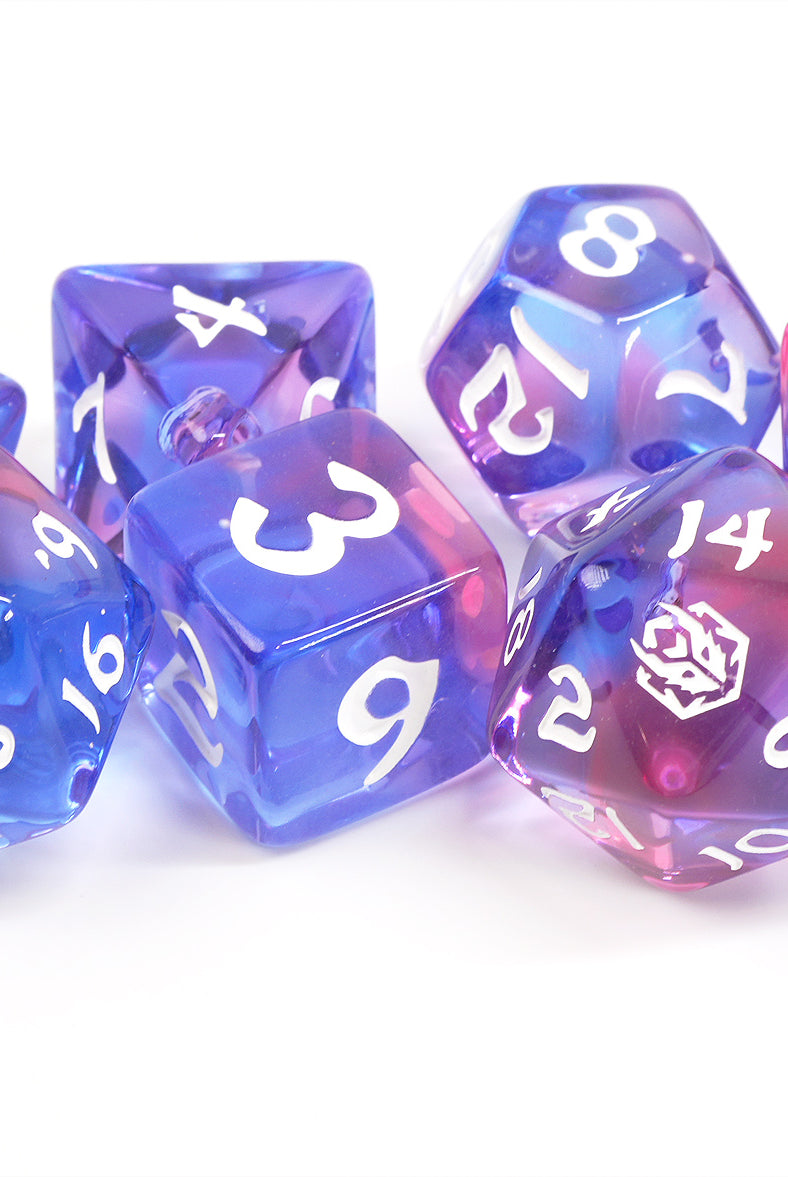 Check out our Mystery Dice Swag Bags and prepare to be amazed! Each bag contains a random assortment of 18 premium game dice + an epic d20. Choose a Dragon Eye, Liquid Core, Floating Eyeball or Metal Enamel twenty-sider and let the good times roll :)